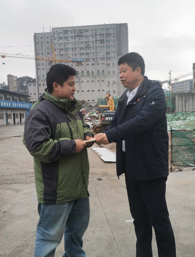 公司黨委副書(shū)記、總經(jīng)理江中同志慰問(wèn)錦園路項(xiàng)目一線困難群眾,并向堅(jiān)守在項(xiàng)目建設(shè)一線的工人們提前送上新春慰問(wèn),致以衷心的感謝和美好的祝愿,感謝大家為項(xiàng)目建設(shè)付出的巨大努力。江中強(qiáng)調(diào),項(xiàng)目負(fù)責(zé)人要做好各項(xiàng)服務(wù)保障工作,確保大家過(guò)一個(gè)歡樂(lè)祥和的春節(jié)。