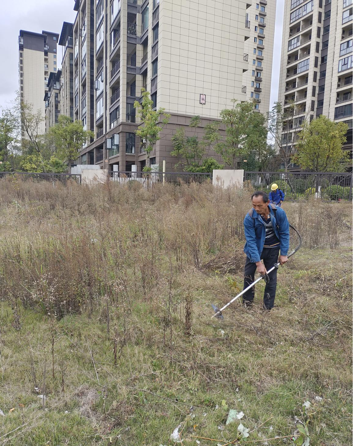 11月27日,在曉華門店約2公里的粟裕公園,物業(yè)人員快速行動(dòng),帶上鐮刀等機(jī)具開始清除遍地雜草。雜草面積較寬且密集重生,為避免受到蛇類攻擊,工作人員不時(shí)提醒現(xiàn)場(chǎng)作業(yè)人員“注意安全”。經(jīng)過兩天努力,近10畝的荒草基本清除完畢,將在適宜時(shí)節(jié)播撒花種。屆時(shí),粟裕公園將會(huì)變得更加美麗,切實(shí)提升居民幸福感。
