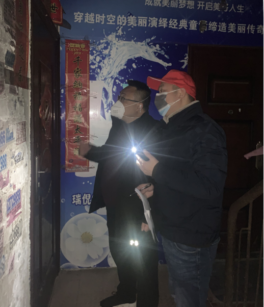 2月4日晚,黨委委員、紀(jì)委書記劉文帶隊排查白天不在家的住戶