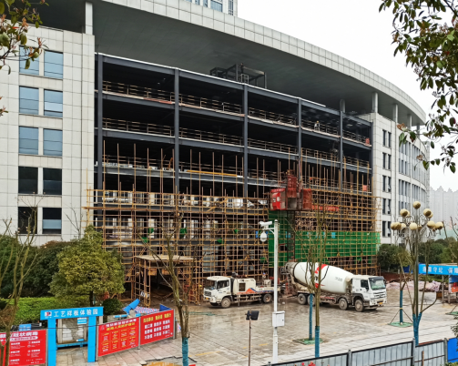 走進市民服務(wù)中心D棟施工現(xiàn)場,只見泵車正在澆筑六樓混凝土,3臺攪拌車有序作業(yè)、升降機上下忙碌,工人們戴著口罩卯足干勁,工地上呈現(xiàn)一派熱火朝天的景象。“為了趕進度,我們從其他項目臨時借調(diào)人員過來?!?ensp;項目負(fù)責(zé)人向躍蘭告訴記者,現(xiàn)在工地上有40多名工人,他們在抓緊施工的同時,關(guān)閉員工食堂,向政府食堂報餐,實行“盒飯打包、分散就餐”,確保施工、防疫“兩不誤”。