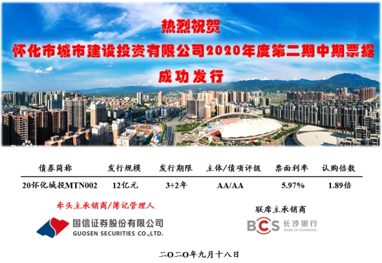 近日,懷化市城市建設投資有限公司在銀行間市場交易商協會成功發(fā)行2020年度第二期中期票據(簡稱“20懷化城投MTN002”),發(fā)行規(guī)模人民幣12億元,期限3+2年,票面利率5.97%。
