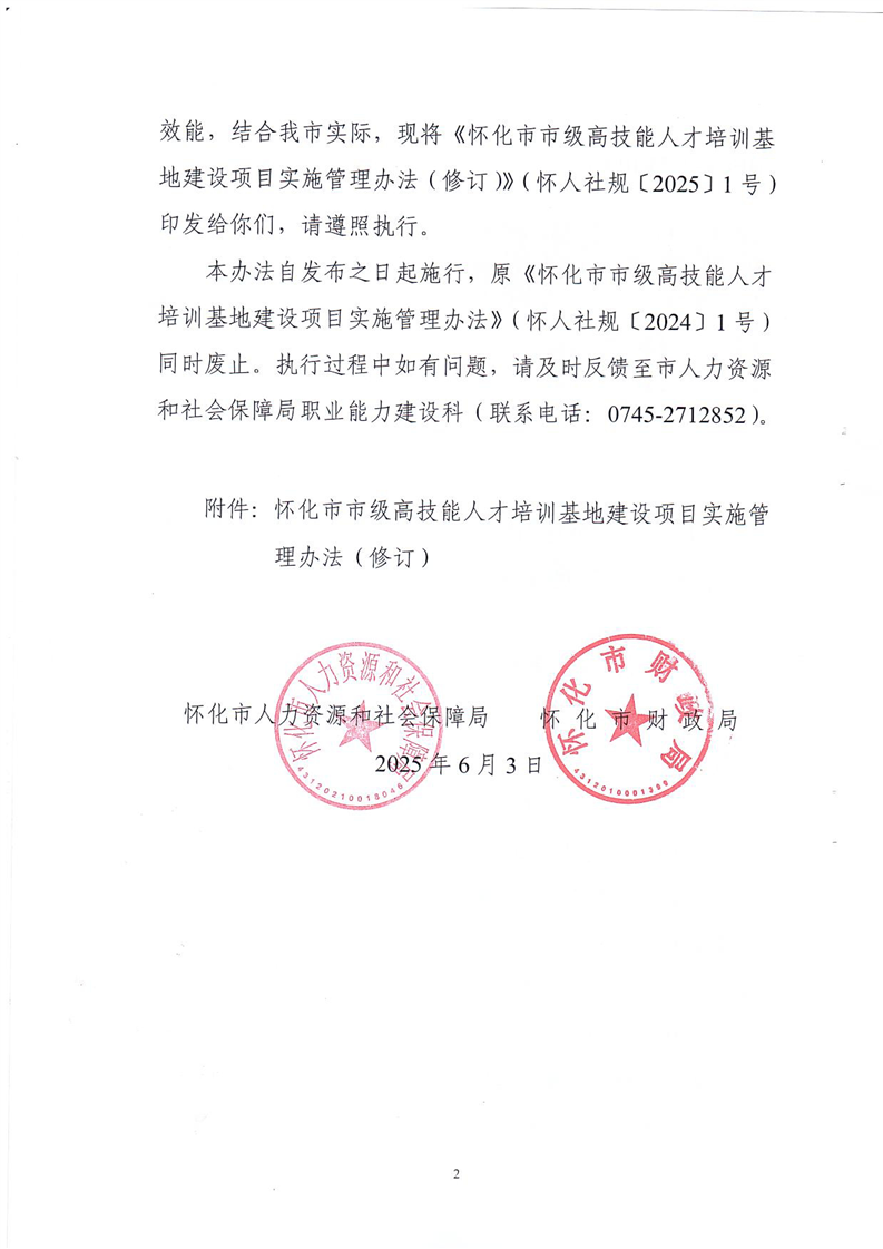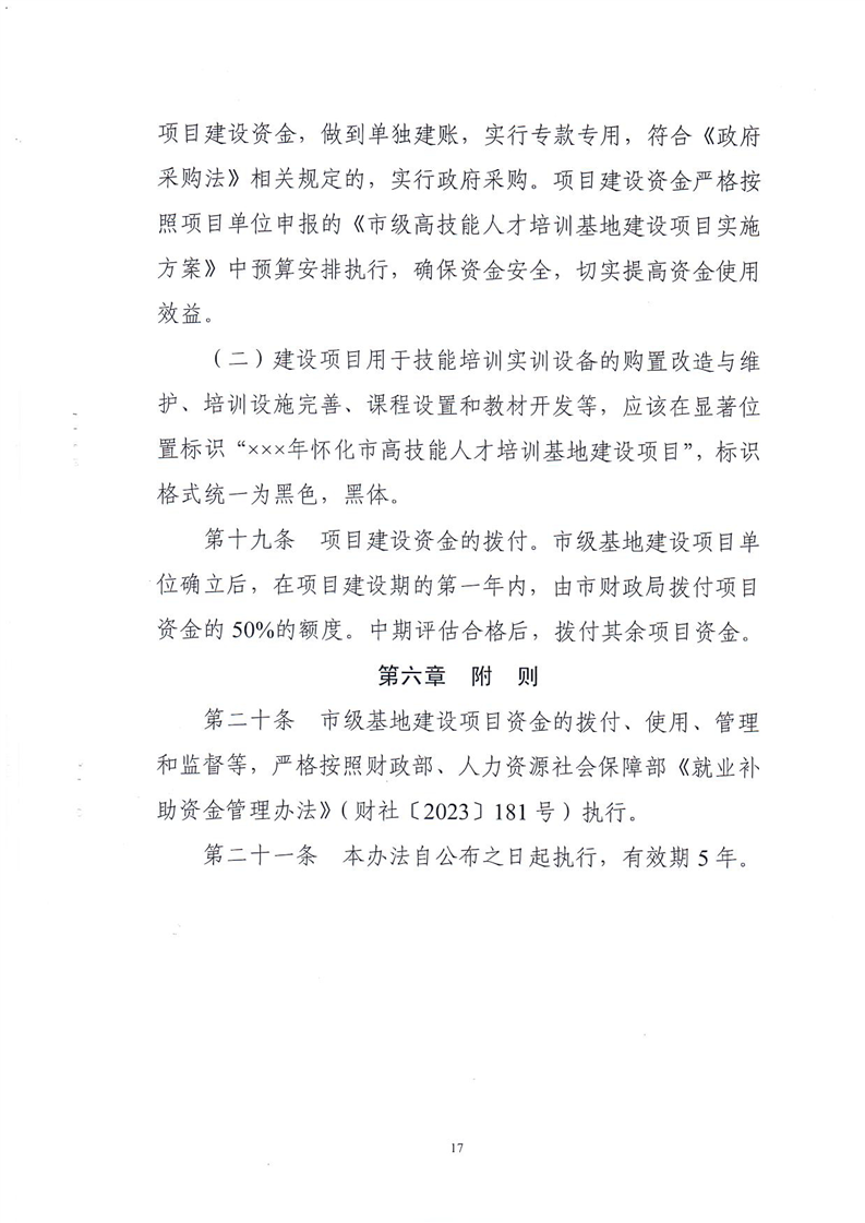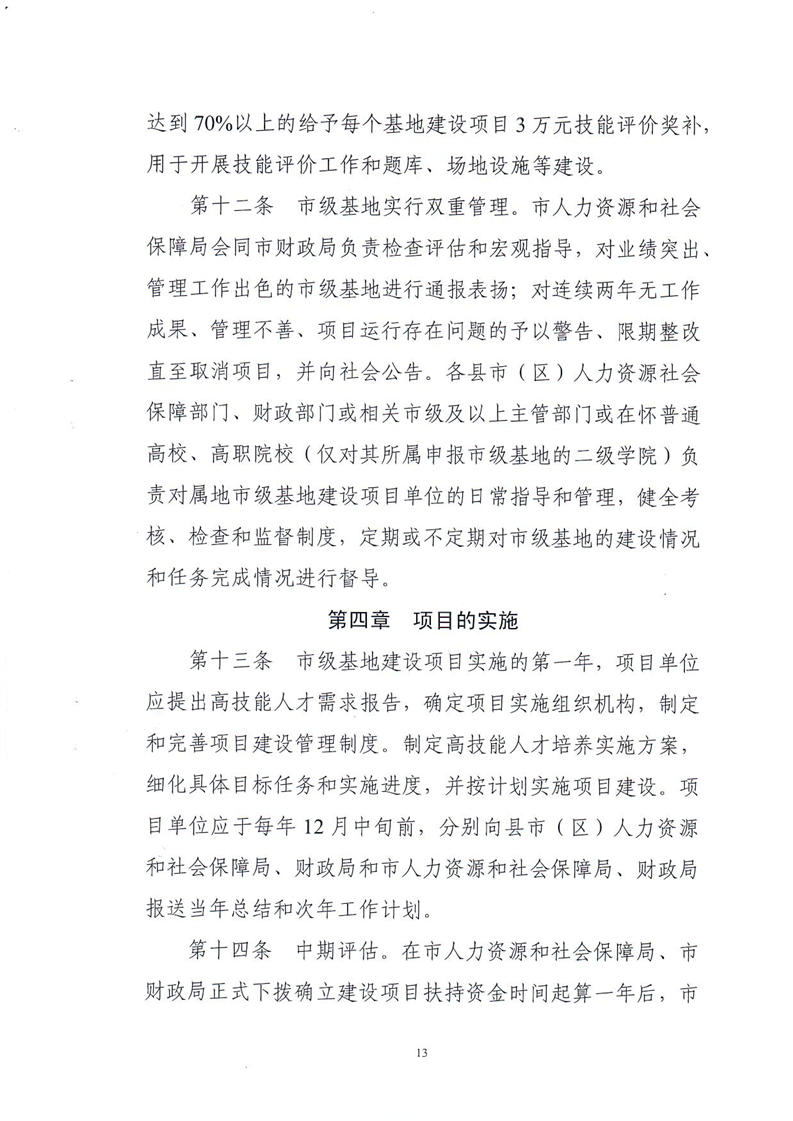 關(guān)于印發(fā)《懷化市市級高技能人才培訓(xùn)基地建設(shè)項目實施管理辦法(修訂)》的通知
