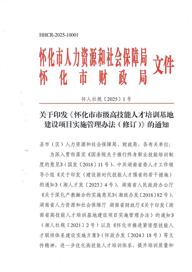 索引號:431200/2025-018274 文號:懷人社規(guī)〔2025〕1號 統(tǒng)一登記號:HHCR-2025-10001