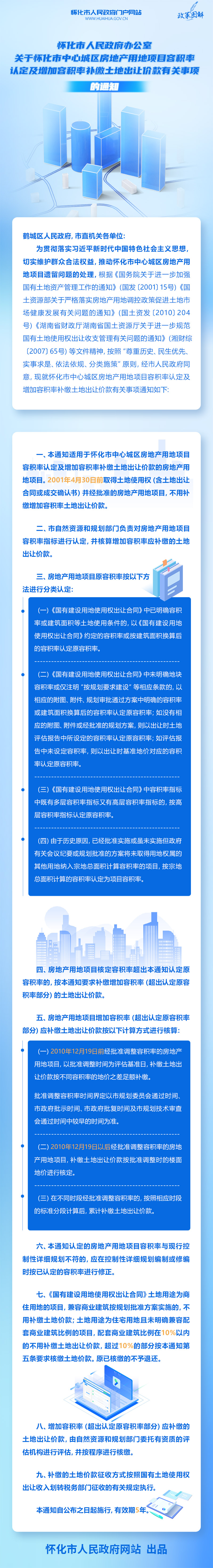 圖解:懷化市人民政府辦公室關于懷化市中心城區(qū)房地產用地項目容積率認定及增加容積率補繳土地出讓價款有關事項的通知