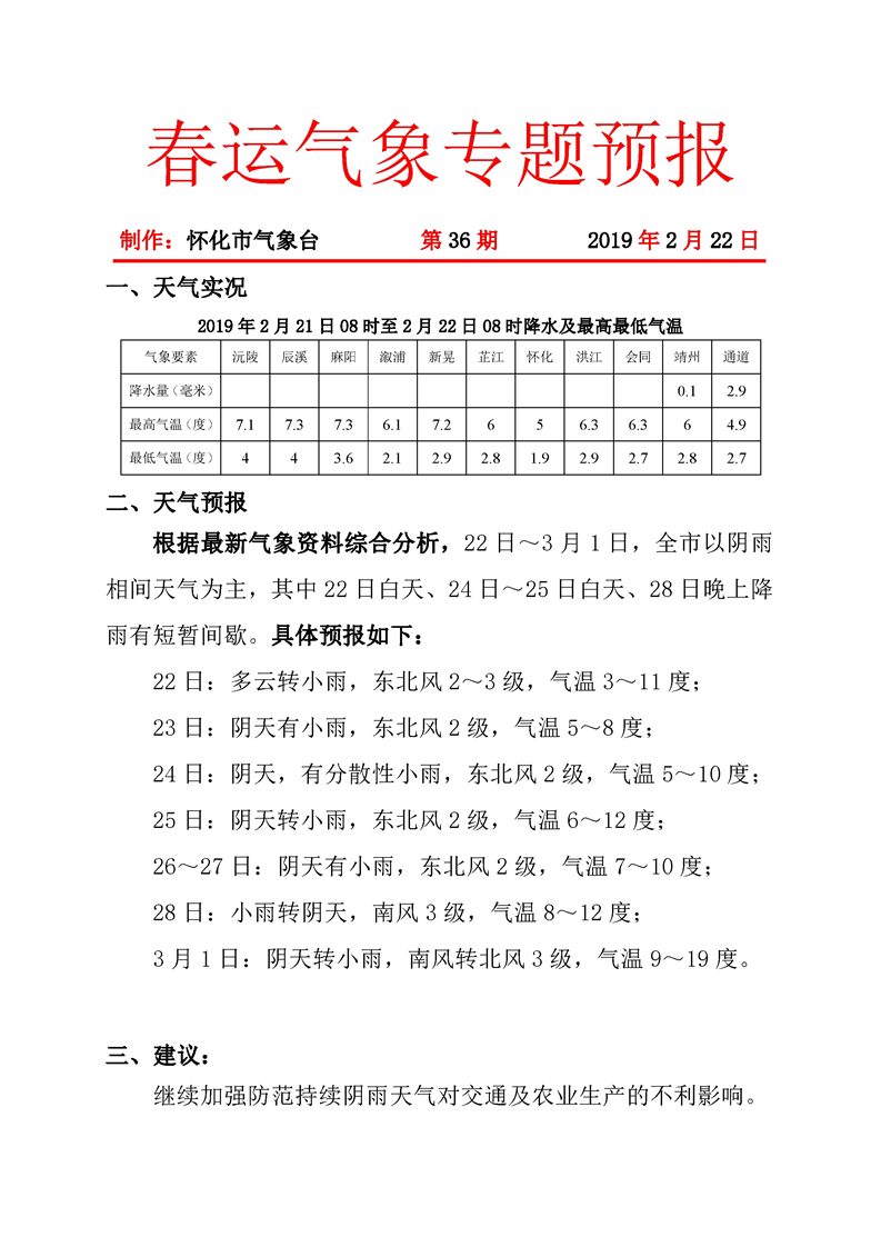 春運(yùn)氣象專(zhuān)題預(yù)報(bào)(第36期)