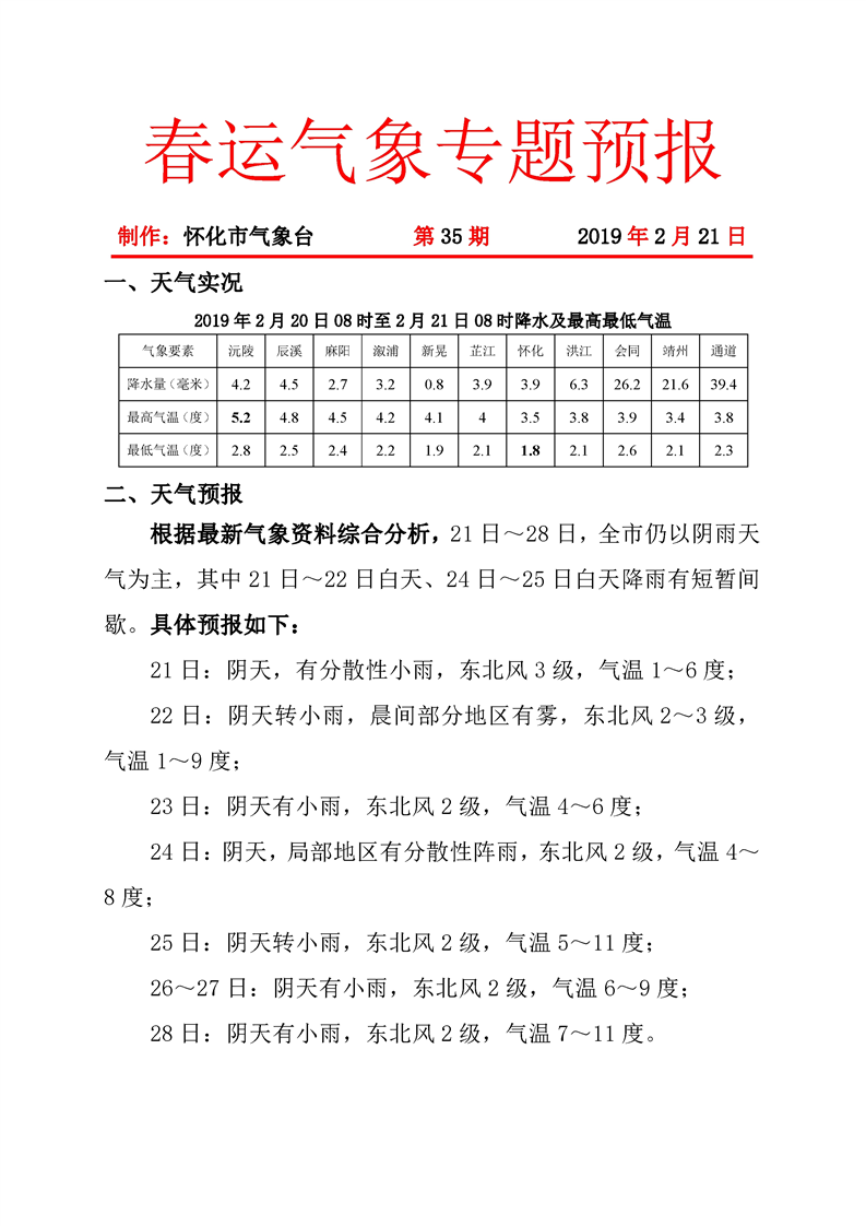 春運氣象專題預報(第35期)