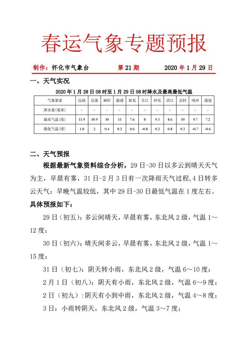 春運(yùn)氣象專(zhuān)題預(yù)報(bào) 第21期