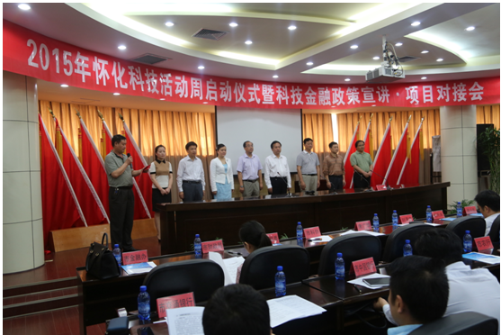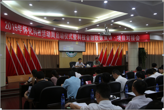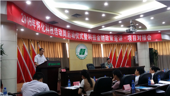 5月19日,2015年懷化科技活動(dòng)周啟動(dòng)式暨科技金融政策宣講·項(xiàng)目對(duì)接會(huì)在懷化工業(yè)園區(qū)舉行。來自懷化市直相關(guān)部門、各商業(yè)銀行、有關(guān)金融機(jī)構(gòu)、50多家科技型企業(yè),以及各縣市區(qū)科技局、經(jīng)信局和工業(yè)集中區(qū)管委會(huì)代表等150余人參加活動(dòng)。懷化市人民政府副市長(zhǎng)楊開鳳宣布活動(dòng)正式啟動(dòng)。