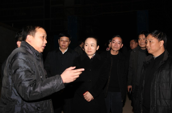 圖為李暉市長聽取施工現(xiàn)場負責(zé)人情況說明