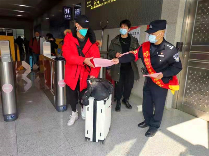 同時(shí),宣傳民警還結(jié)合當(dāng)前工作重點(diǎn),在候車室、出站口、售票廳等向旅客廣泛的開展防電信網(wǎng)絡(luò)詐騙宣傳、愛車護(hù)路宣傳、疫情防控宣傳、防扒安全防范宣傳等相關(guān)知識(shí),并給旅客發(fā)放了春運(yùn)安全出行手冊(cè),提醒旅客乘坐列車出行的需要注意的安全事項(xiàng)。
