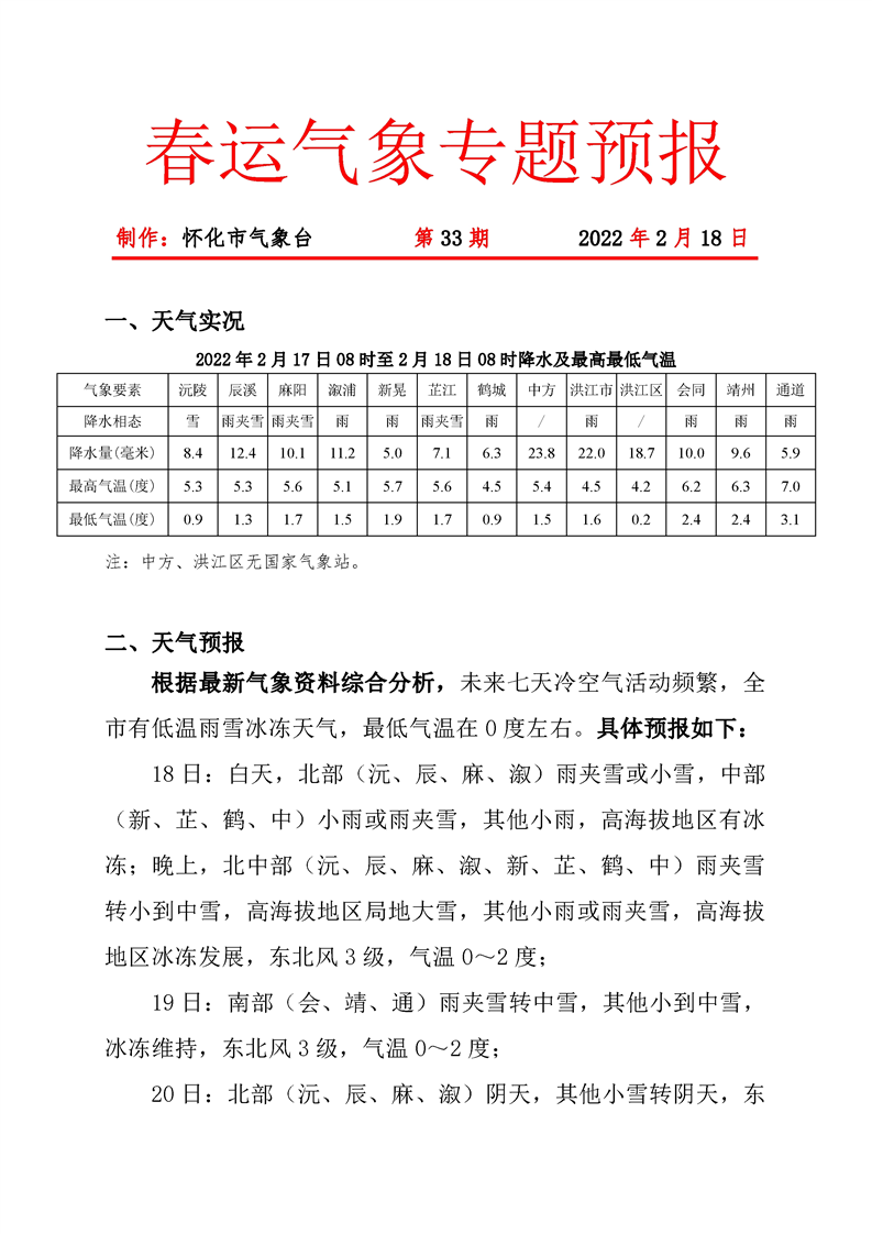 春運(yùn)氣象專題預(yù)報(bào) 第33期