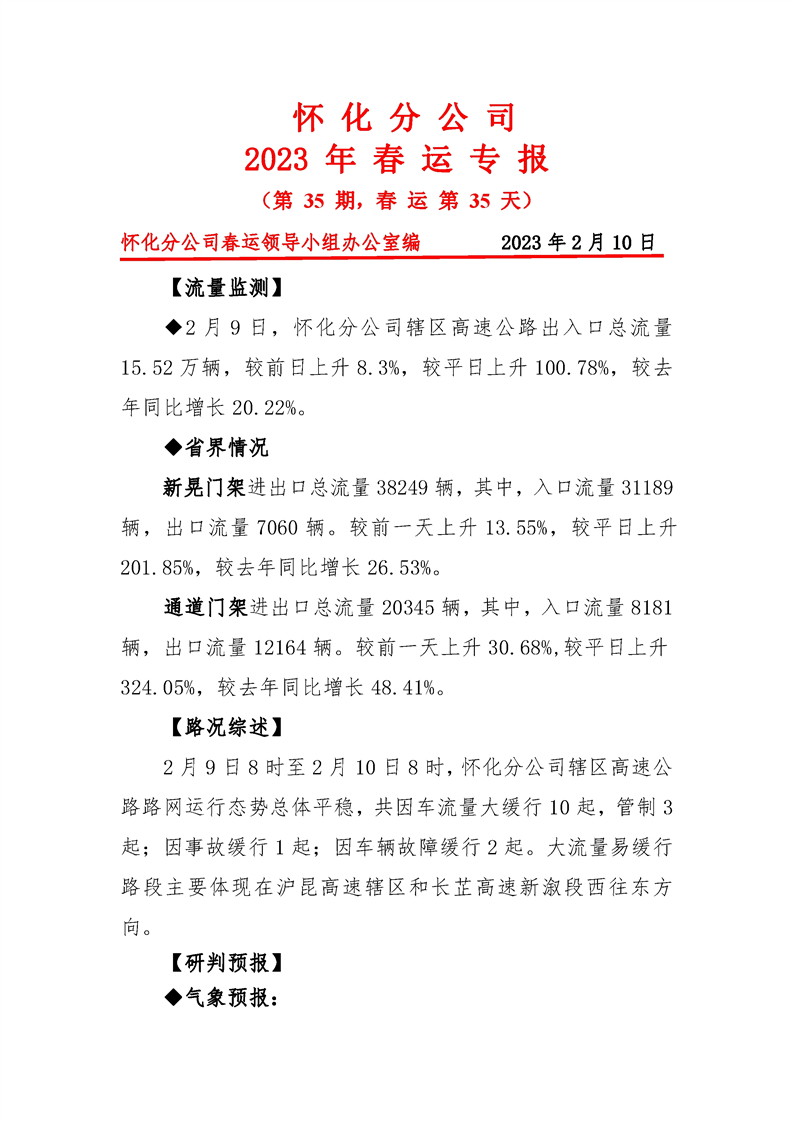 2023年懷化分公司春運(yùn)專報(bào)-第35期