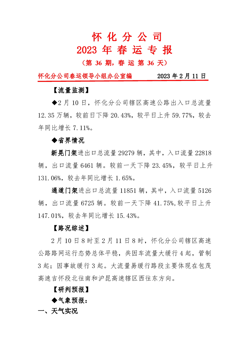 2023年懷化分公司春運專報-第36期
