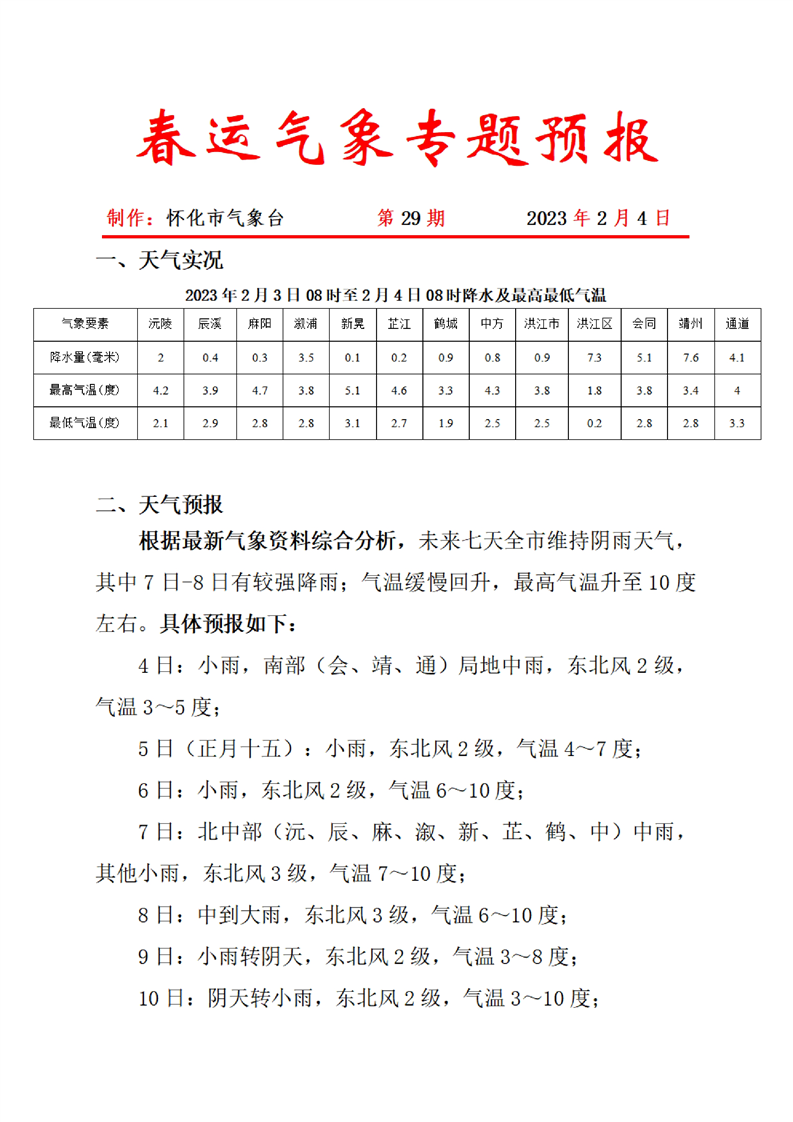 春運(yùn)氣象專題預(yù)報(bào) 第29期