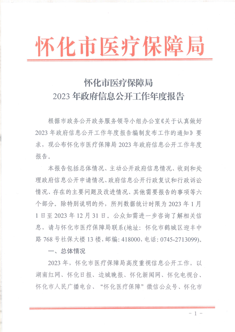 懷化市醫(yī)療保障局2023年政府信息公開工作年度報(bào)告