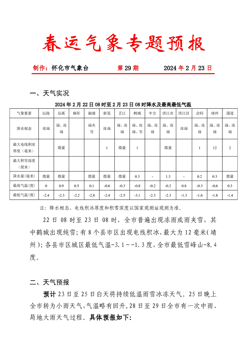 春運期間氣象專題預(yù)報2024022310-029