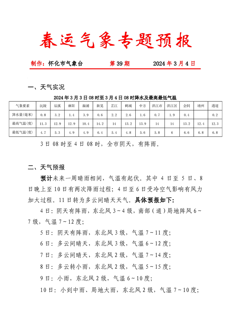 春運期間氣象專題預(yù)報2024030410-039