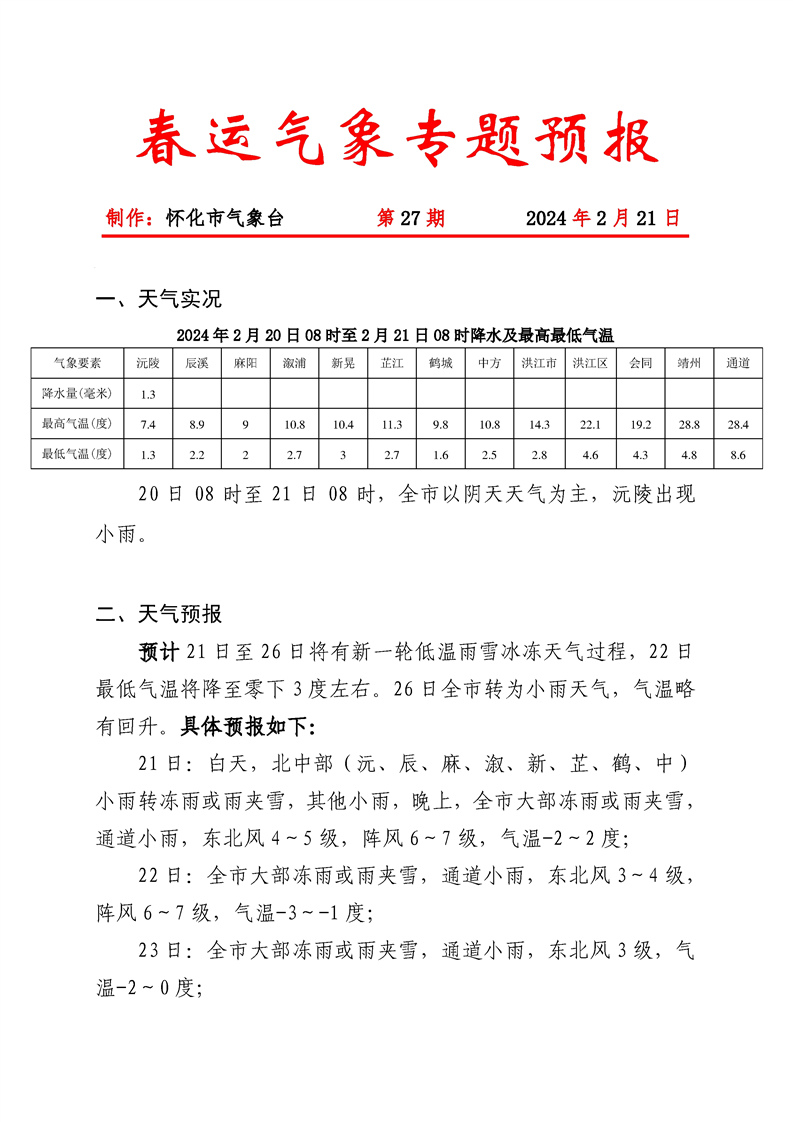 春運期間氣象專題預(yù)報2024022110-027