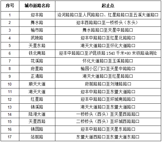根據懷化城區(qū)機動車違法停車管理工作及城區(qū)部分道路更名的實際情況,為規(guī)范城區(qū)道路違法停車整治工作,現將平安路、云集路等2條機動車違法停車行為嚴格管理路段調整為非嚴格管理路段,迎豐路、順天大道部分路段做優(yōu)化調整,環(huán)城東路、高堰路、舞陽大道予以更名。城區(qū)調整后的嚴格管理路段如下: