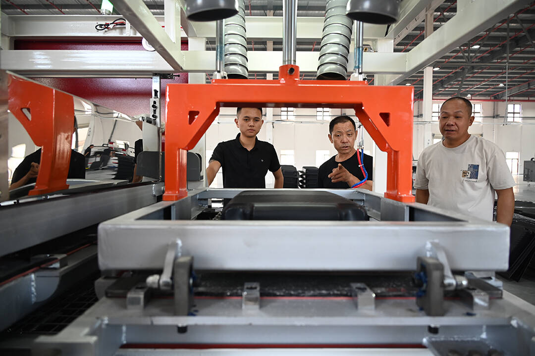 在湖南享懷箱包加工生產(chǎn)基地,一條條現(xiàn)代化的生產(chǎn)線整齊排列著,機(jī)器的轟鳴聲此起彼伏。流水線上,工人們熟練地操作著全自動注塑機(jī)、全自動縫線機(jī)等各種設(shè)備,裁剪、縫制、打包等一項(xiàng)項(xiàng)流程有條不紊地進(jìn)行著。