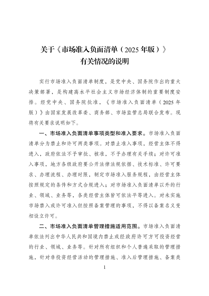 《市場(chǎng)準(zhǔn)入負(fù)面清單(2025年版)》